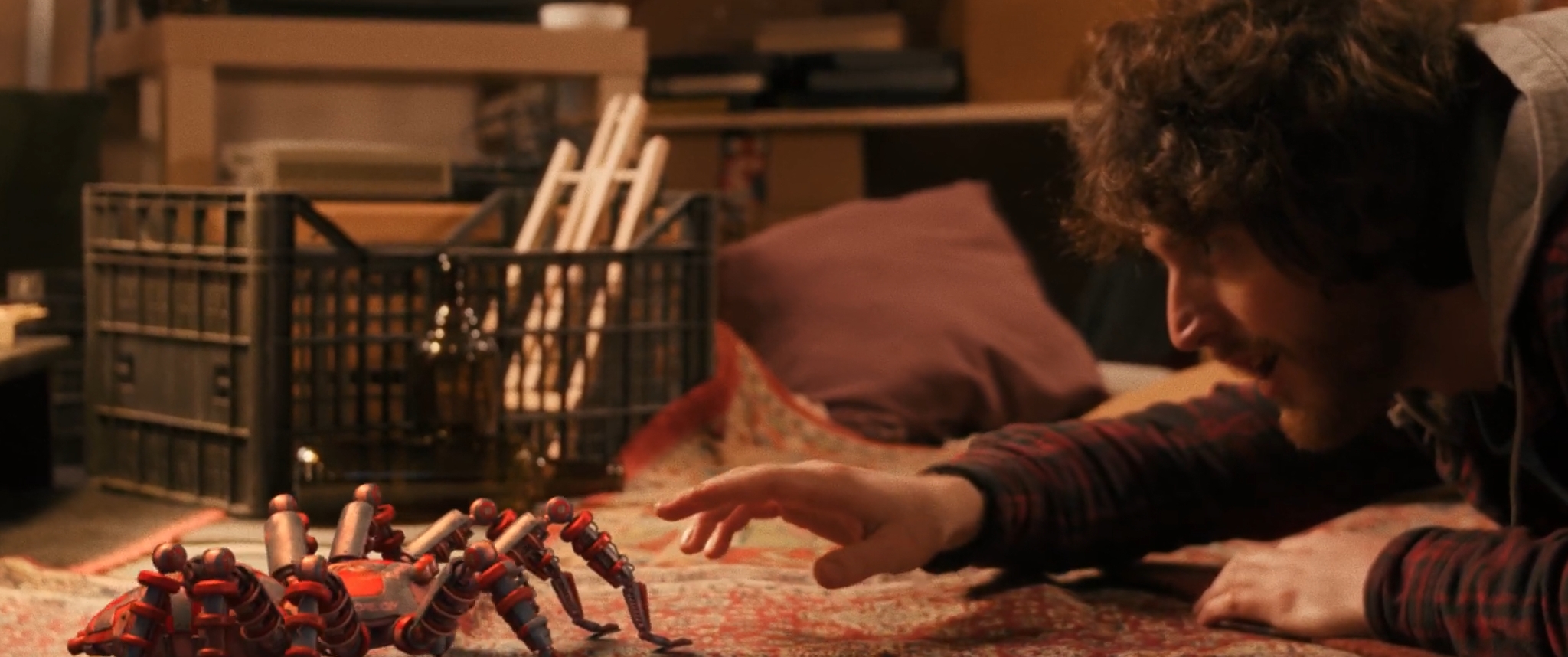 A young man tries to relax by dropping a tab of acid and finds himself having fun with a friendly mechanical spider. Or so he thinks.